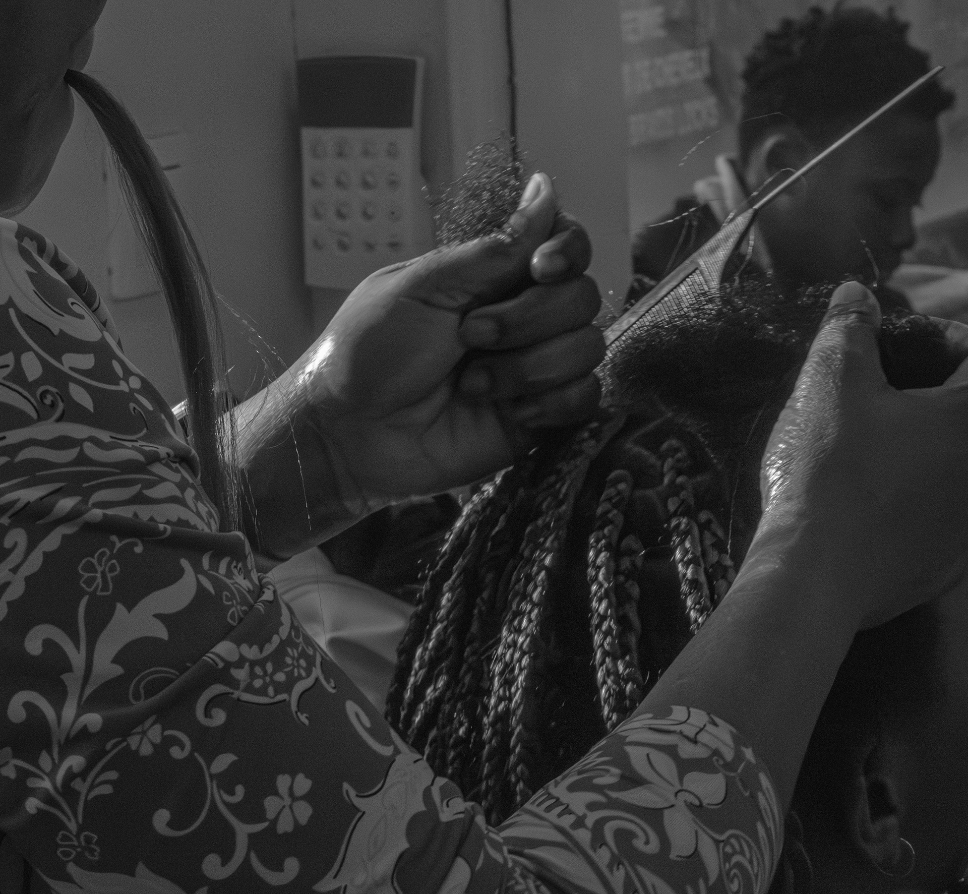 Dans cette série nous plongeons au coeur d'un salon de coiffure à Paris. Nous allons à la rencontre d'hommes et de femmes, aux statuts divers et variés, tous au service de la beauté. Coiffeuse, gérant ou rabatteur, de la rue pour la recherche de client à l’intérieur du salon de coiffure, avant, pendant et après la prestation, tout le monde s’applique, met du soin et du sien. Bien plus qu’un lieu où l’on coiffe et se fait simplement coiffer, c’est un lieu de vie, d’échanges, et même d’apprentissage.